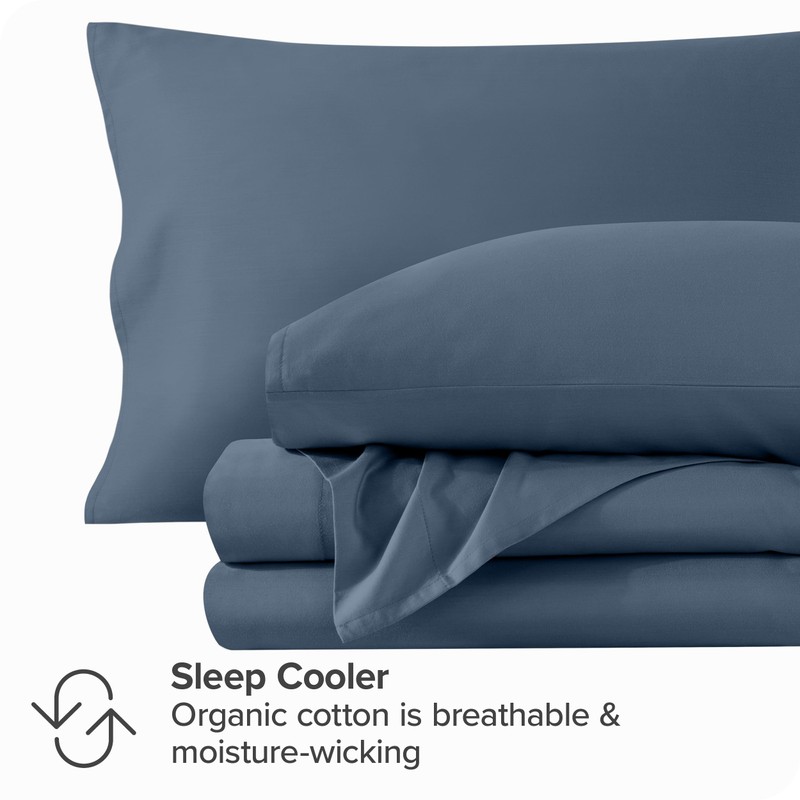 Bare Home 100% Organic Cotton King Sheet Set - Smooth Sateen Weave - Breathable & Cooling - Hotel Luxury Set - Deep Pocket Bed Sheets (King, Bering Sea)