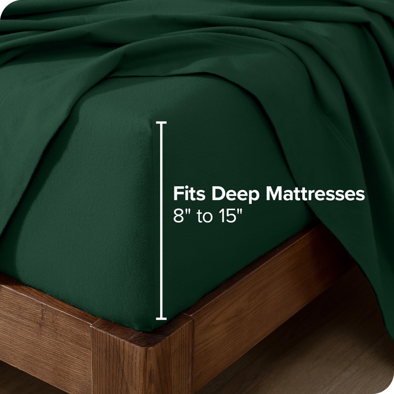 Bare Home Flannel Sheet Set 100% Cotton, Velvety Soft Heavyweight - Double Brushed Flannel - Deep Pocket (Queen, Forest Green)