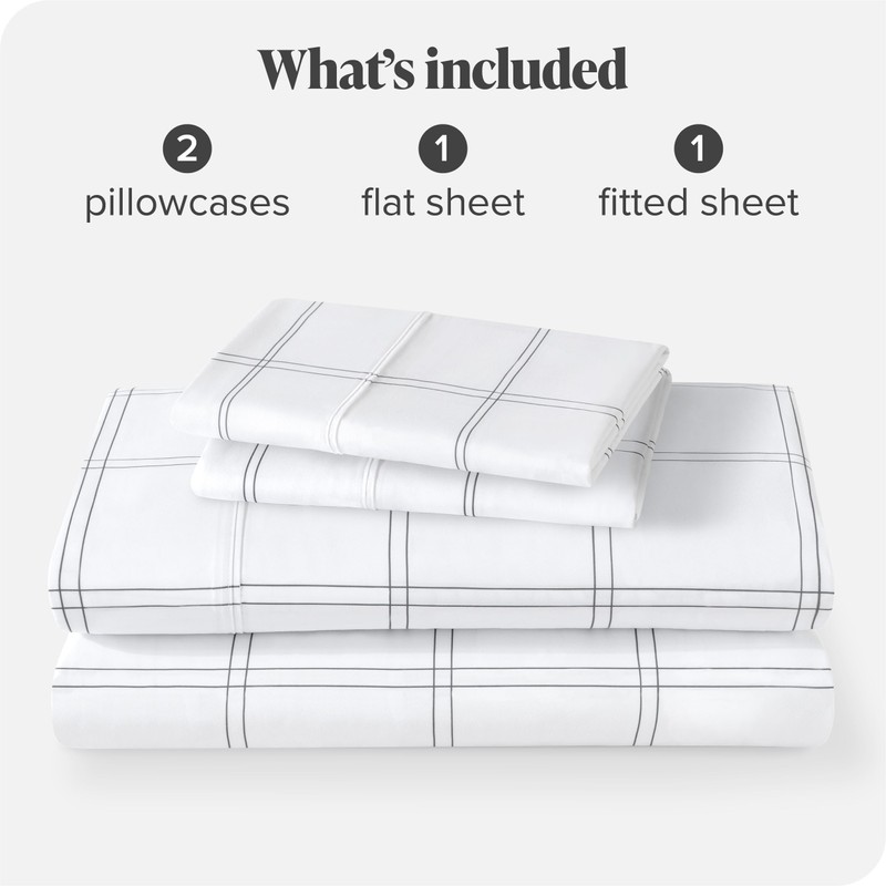 Bare Home Full Sheet Set - Luxury 1800 Ultra-Soft Microfiber Full Bed Sheets - Double Brushed - Deep Pockets - Easy Fit - 4 Piece Set - Bedding Sheets & Pillowcases (Full, Modern Plaid - White/Grey)