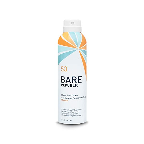 Bare Republic Mineral Sunscreen SPF 50 Sunblock Spray, Sheer and Non-Greasy Finish, Vanilla Coco Scent, 6 Fl Oz