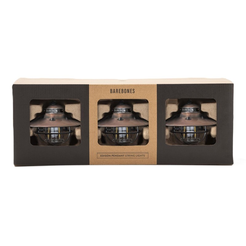 Barebones Edison Pendant String Lights - Copper, 3 Edison-Style LED Bulbs with 10-Foot Cord, Energy-Efficient Outdoor Lanterns for Patio, Garden, or Indoor Decor