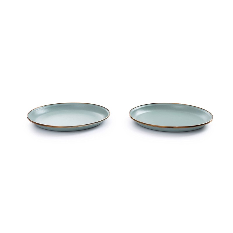 BAREBONES Enamel Plate, Set of 2, (Sad Plate 8.2 inches (20.9 mm) Diameter, Mint Green