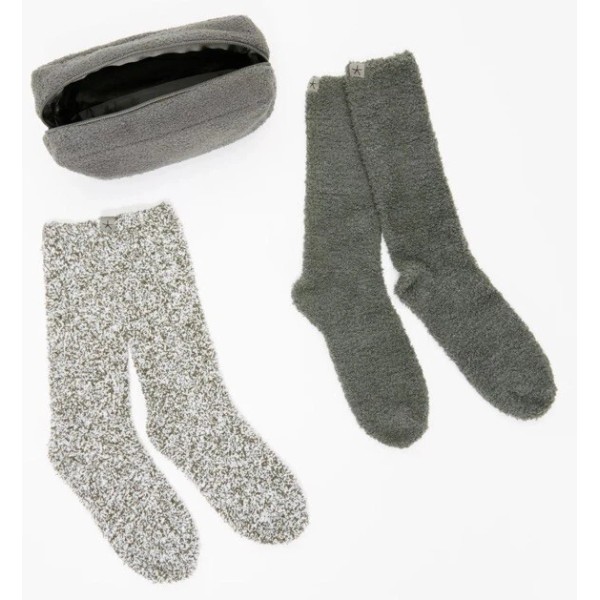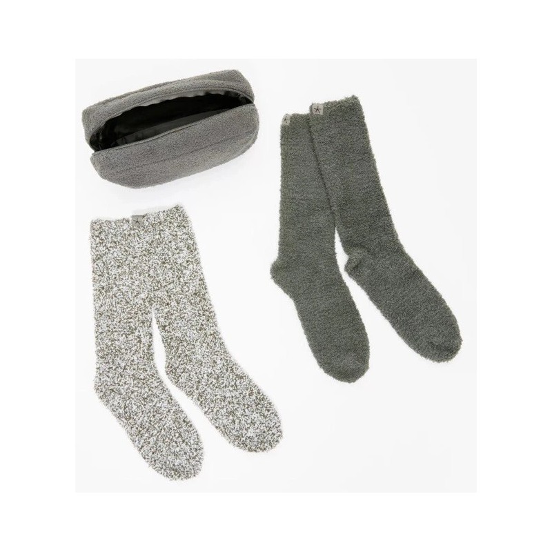 Barefoot Dreams NEW Barefoot Dreams CozyChic 2 Pair Sock Set With Pouch Smokey Gray Multi OS