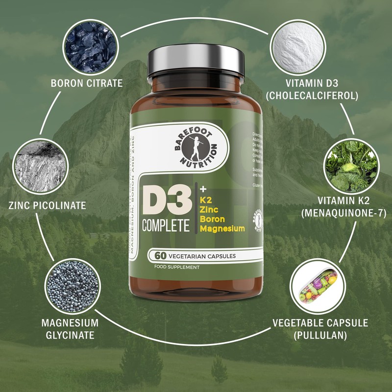 Barefoot Nutrition - Vitamin D3 Complete 4000 IU, With Vitamin K2 MK-7, Magnesium, Boron & Zinc Supplement, High Strength Formula for Bone and Normal Health Function, 60 Capsules