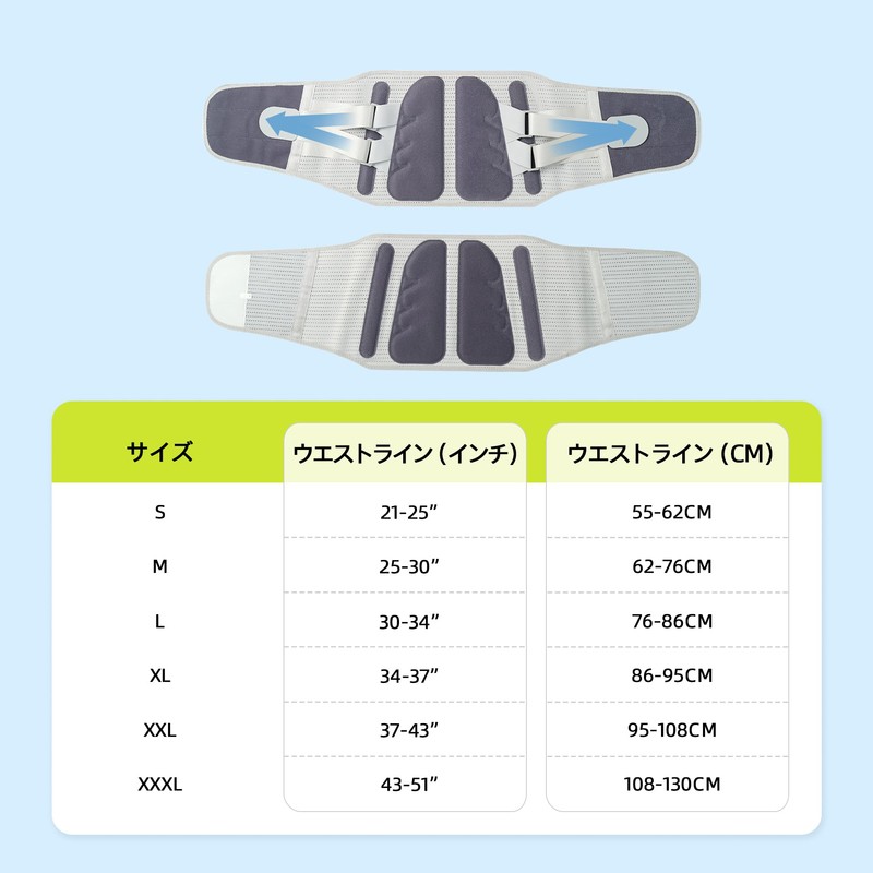 - 圧倒的なサポート力:他社の腰用ベルトより強いホールド力の秘密とは~4本金属ボーン+2本スプリングバー。シリーズの中で最も高い固定力で、腰全体をしっかりサポート。 金属ボーンと8枚構造の補助ベルトにより、強力サポートを実現しました。日常には腰に負担のかかるシーンがたくさん。辛い時には、サポーターで腰の負担を軽くしてあげましょう。