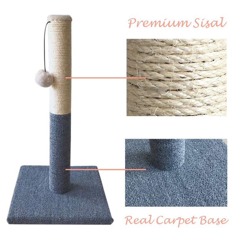 - [Fun Fact] - our scratch post is a great alternative for leaving your kitten alone without it damaging your furniture. Your lovely pet can scratch the sisal rope post, play with the toy plush ball and have fun while leaving your sofa and tiles free of scratches.