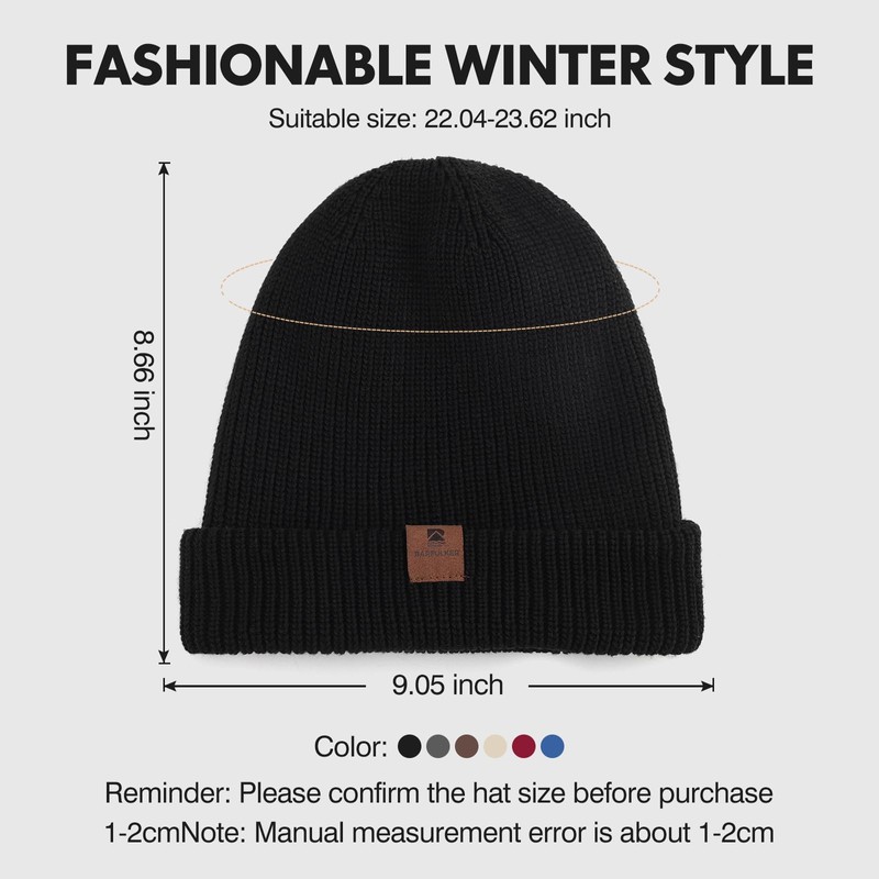 - One size fits most: The size of the knitted hat is 23 x 22 x 2.5 cm, the head circumference is 56-60 cm/22-23.6 inches, and thanks to the good elasticity, our winter hat fits most people.