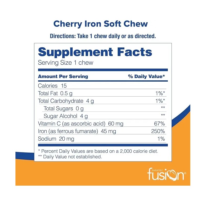 Bariatric Fusion® | Cherry Bariatric Iron Soft Chew with Vitamin C