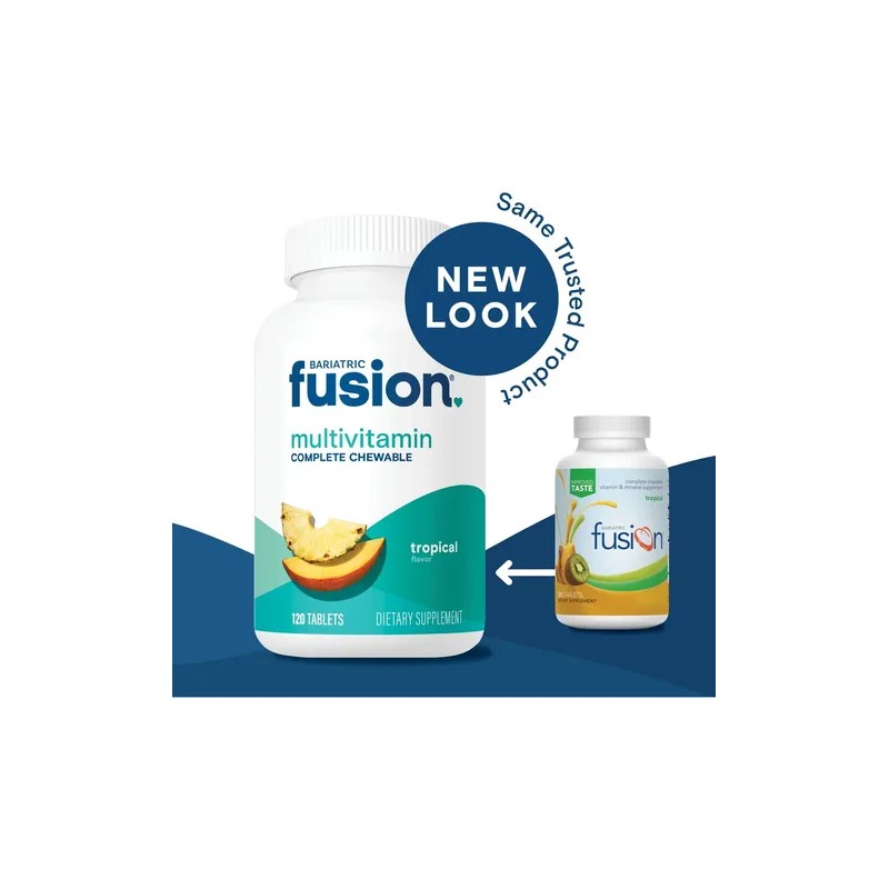 Bariatric Fusion® Multivitamin Complete Chewable Sabor Tropical 120 Tabletas Masticables I Suplemento Nutricional Con Vitaminas y Minerales Esenciales Post Cirugía Bariátrica, Manga Gástrica o Bypass Gástrico.