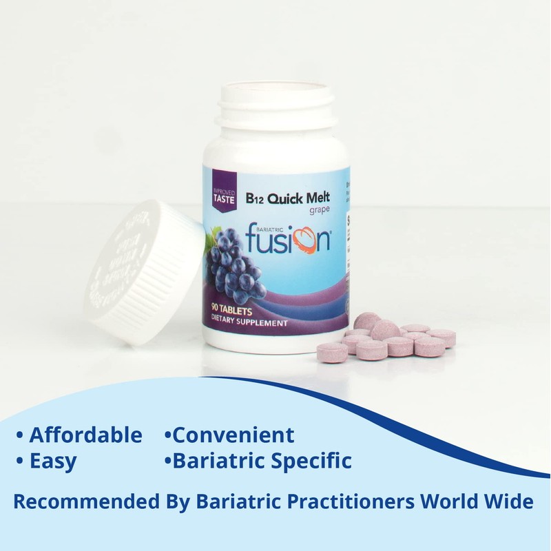 Bariatric Fusion Vitamin B12 Quick Melt | Grape Flavored Tablets | Dissolves On Your Tongue | Post Bariatric Surgery Patients | Gluten, Dairy & Soy Free | 90 Count