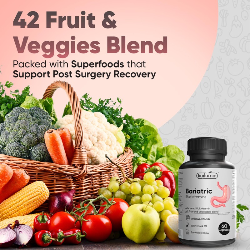 - Made with a Special Blend - Experience the health benefits of 42+ fruits and vegetables with these multivitamin capsules. Rich in antioxidants, vitamins and minerals, our bariatric vitamin promotes your body’s immune functions, keeping you in optimal condition.