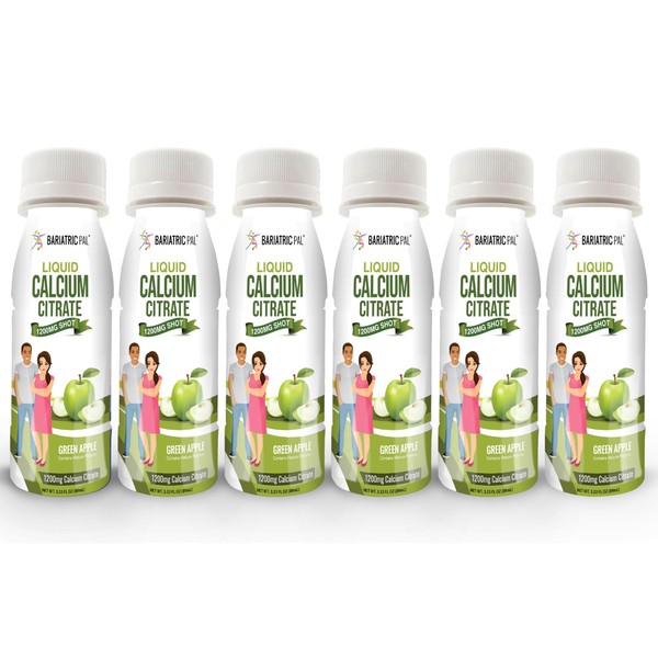 BariatricPal 1200mg Calcium Citrate Sugar-Free Liquid Shots - Green Apple (6-Pack)