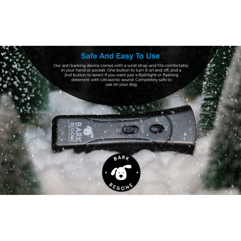 - 100% SAFE FOR YOUR DOGS - The ultrasonic sound that is emitted from the Bark Begone ultrasonic dog trainer hand held device is 100% safe for your dog. Our handheld bark control device is lightweight, durable, and includes a flashlight