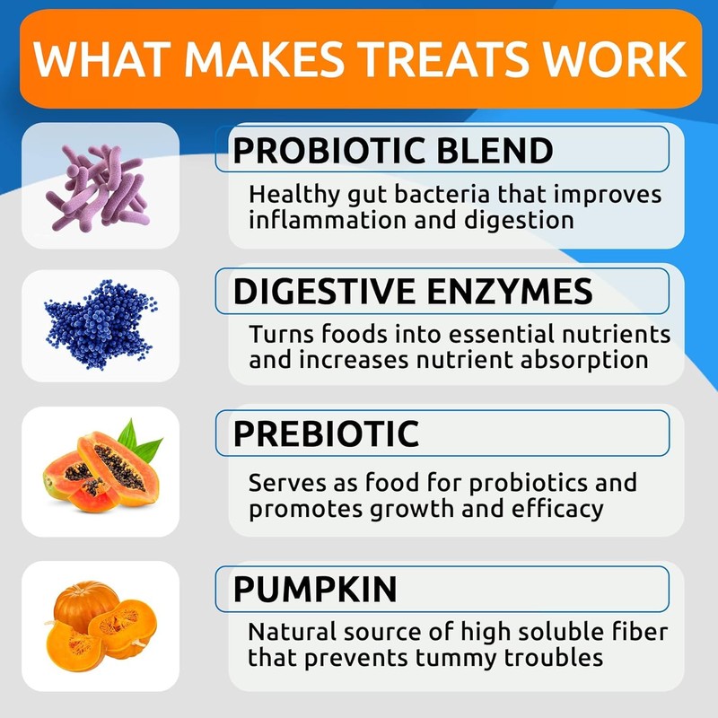 - Vet Strength Digestion Support - formulated with 1 billion CFUs and pumpkin sourced fiber to daily use for pets in case of regular stomach issues like gas, diareaha, sensitive or upset stomach, constipation, gas, acid, loose stool, bad breath and more. Daily probiotic treatments with pre-biotic, fiber and enzymes will help ease these issues and maintain healthy digestion.