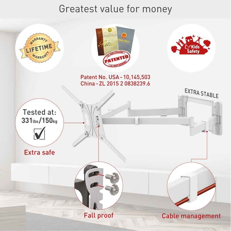 Barkan 40" Long White TV Wall Mount, 13 - 80 inch Dual Arm Full Motion Articulating - 4 Movement Flat / Curved Screen Bracket, Holds up to 110lbs, Extra Stable, Fits LED OLED LCD