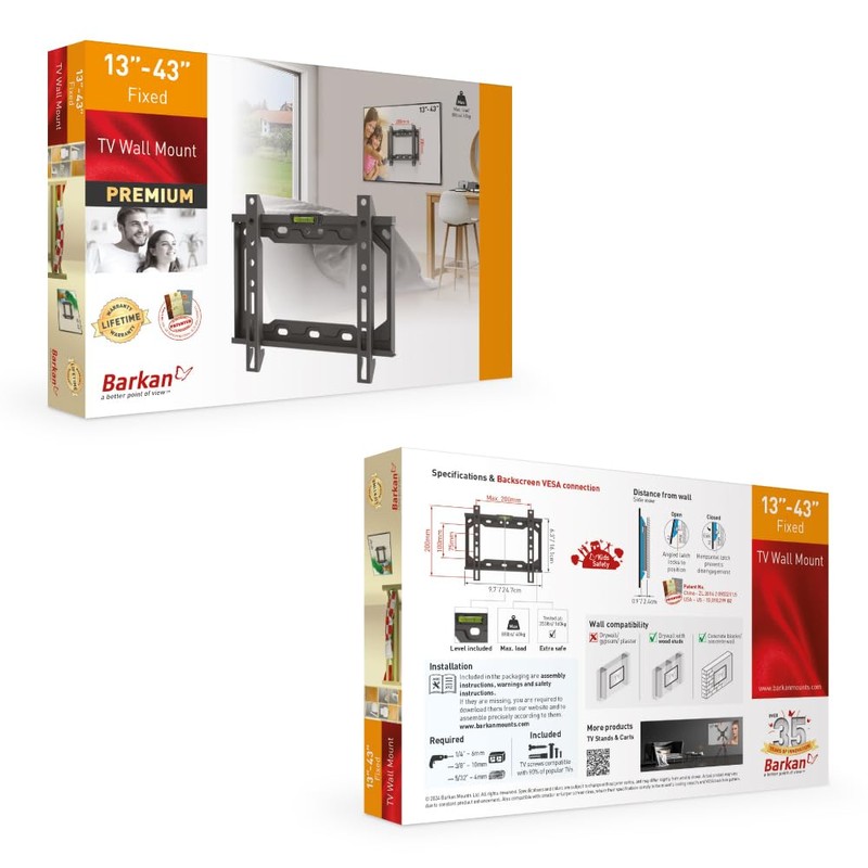 Barkan Fixed TV Wall Mount, 13-43 Inch Size, Black