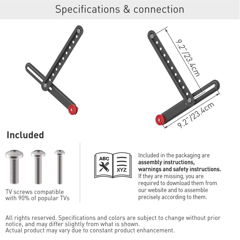 - ► COMPATABILITY - The bracket can be positioned in multiple angles and positions, to fit a wide range of soundbars and TV mounts from most brands. Can be connected to the TV in various connection options, according to the structure of the TV and the soundbar.