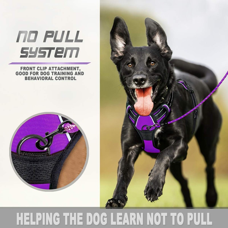 BARKBAY No Pull Dog Harness Front Clip Heavy Duty Reflective Easy Control Handle for Small Medium Large Dogs(Purple,L)
