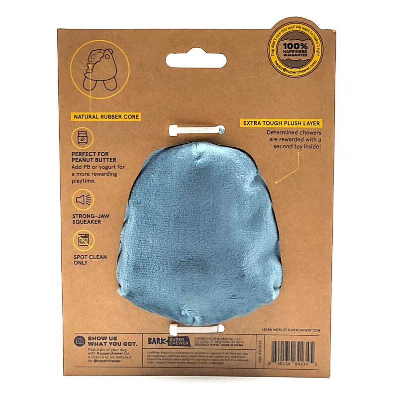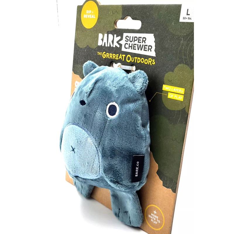 Bark Super Chewer Bear Hugger 2-in-1 Plush Exterior with Hard Core Tough Dog Chew Toy is a tearable toy that needs a big bear hug—from your pup’s jaws. Let your furry friend rip away the plush exterior to reveal a tough rubber core with treat-spreading grooves for a whole new way to play. This toy is perfect for determined chewers who love to shred and gnaw. Plus, it holds your furbaby’s favorite spreadable treats like peanut butter or plain Greek yogurt for a tasty twist on playtime