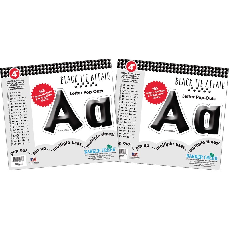 BARKER CREEK 4" Letter Pop-Outs 2 Pack, Black Tie Affair, Jazz Up Your Bulletin Boards with These Colorful Letters, 510 Upper and Lowercase Letters, Numbers & Punctuation Marks, 4" (3637)