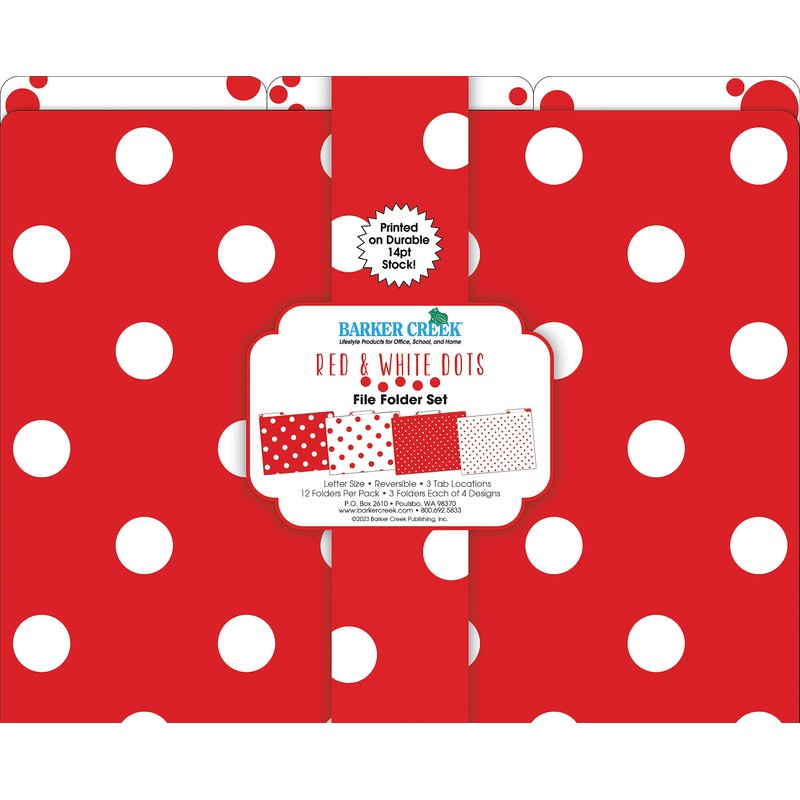 • Red & White Dot File Folders: Organize your files by design for a visual clue to what's inside. Set includes three each of four coordinating designs. Assign a different pattern to each project, team, account - the options are endless!