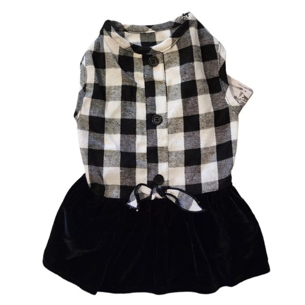 Barker & Jane Plaid Shirt,Sash, Faux Buttons,Velour Skirt Puppy/Dog Dress, XS
