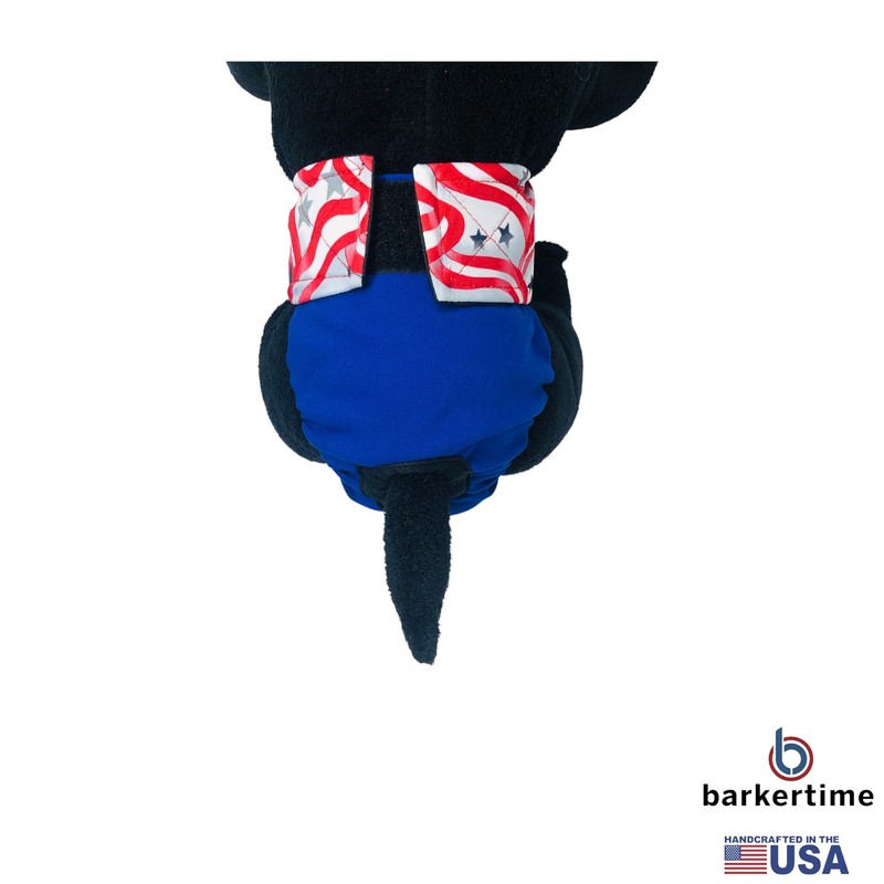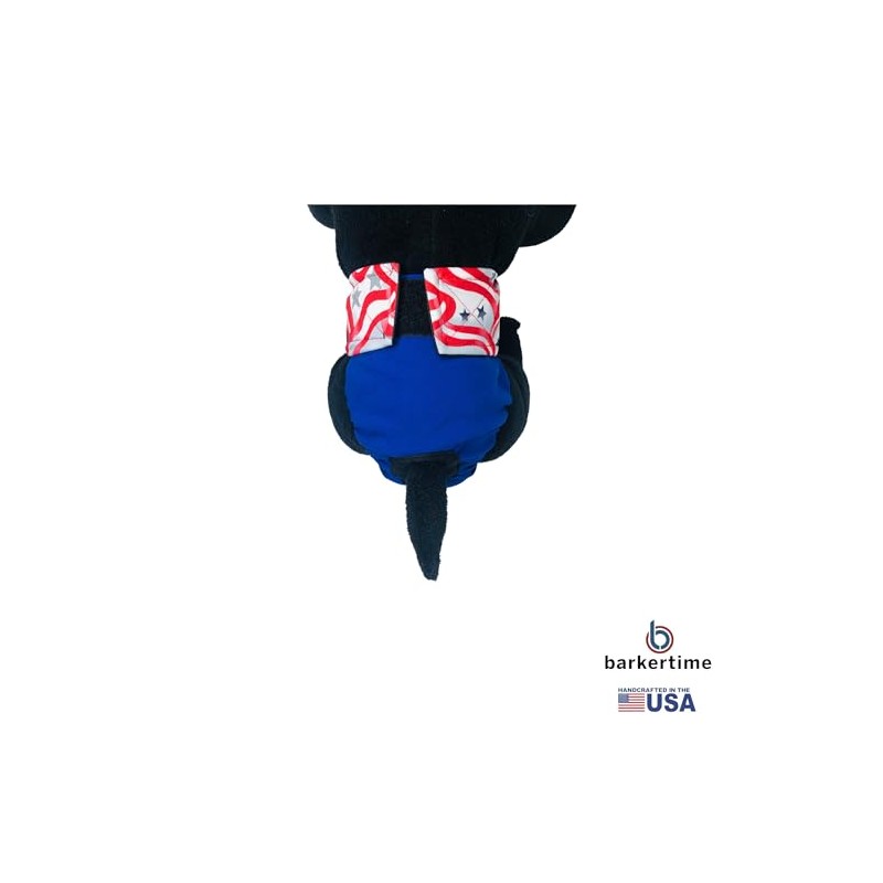 Barkertime Patriotic Stars on Blue Premium Waterproof Cat Diaper, L, Without Tail Hole Stud Pants for Piddling, Spraying, Incontinent Cats - Made in USA