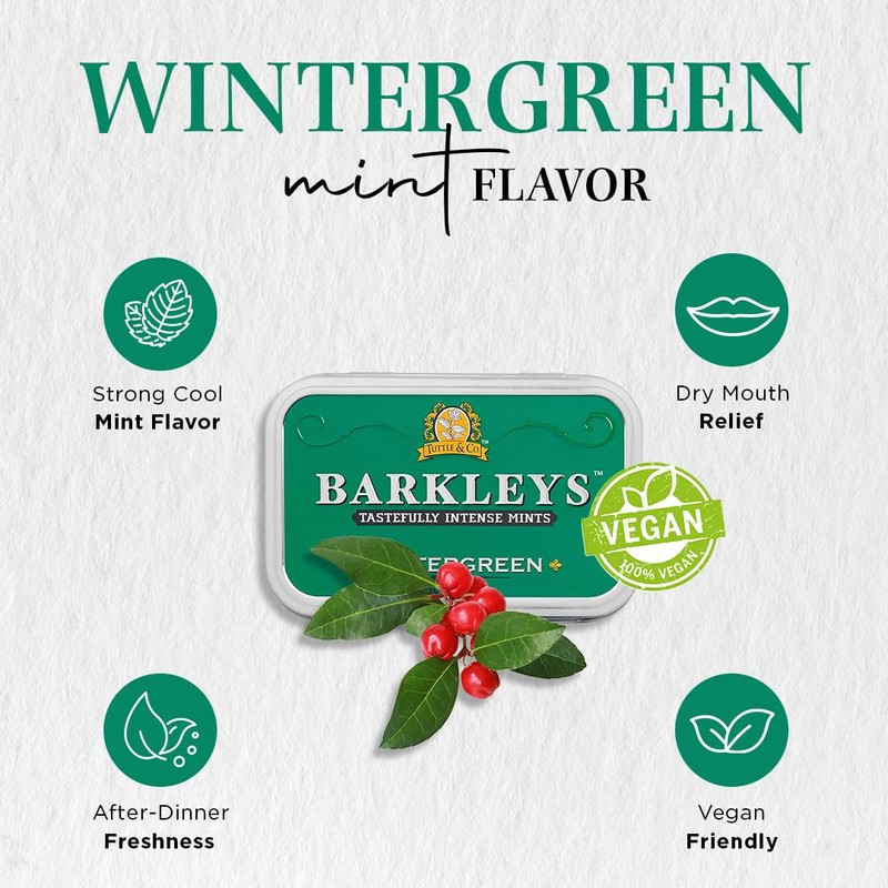 Barkleys Mints Wintergreen Tastefully Intense Mints Tins 50 g (Pack of 6)