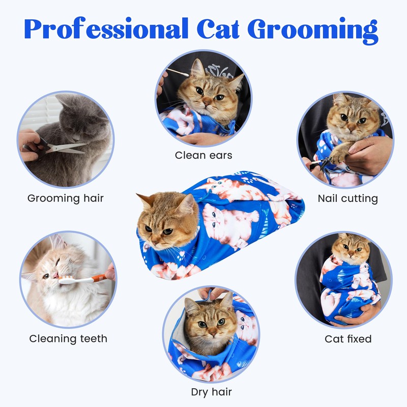 - Multifunctional Cat Wrap:Cat wrap for cutting nails makes it easier to trim your cat's nails, cat restraint for nail clipping can also be used to trim your cat's hair, clean out your cat's ears, and brush your cat's teeth. Unique design makes it perfect for daily cat care, essentially meeting all of your cat's daily grooming needs.