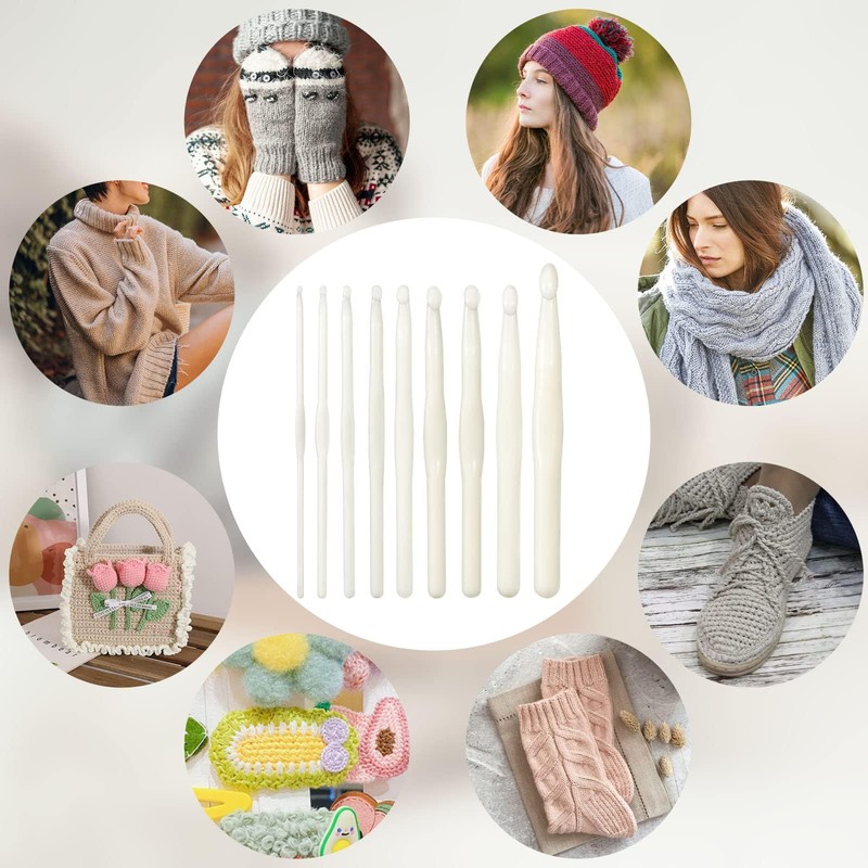 Barlone Crochet Hook Set, 9 Pieces Crochet Hooks Set, 3 mm - 12 mm White Crochet Hook, Lightweight Crochet Hook Set, Plastic Crochet Set for Beginners, Adults and Experienced Crochet Lovers