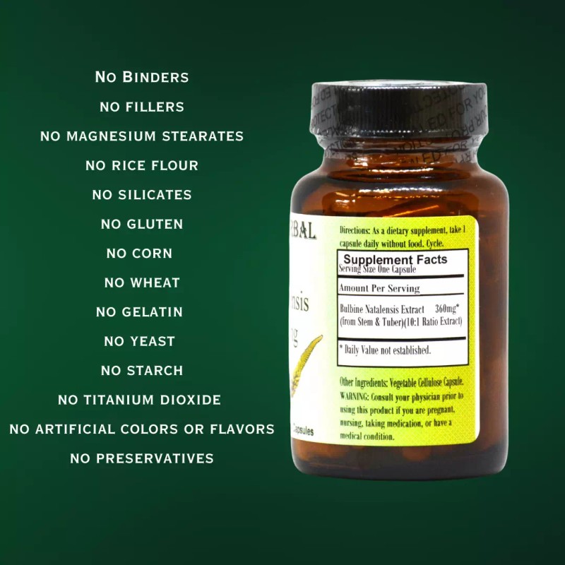 Barlowe's Herbal Elixirs BULBINE NATALENSIS 10:1 EXTRACT | 360mg | 60 VEGGIE CAPSULES | BOTTLED IN GLASS
