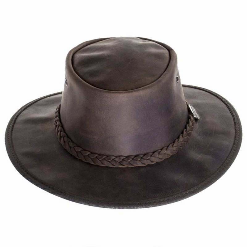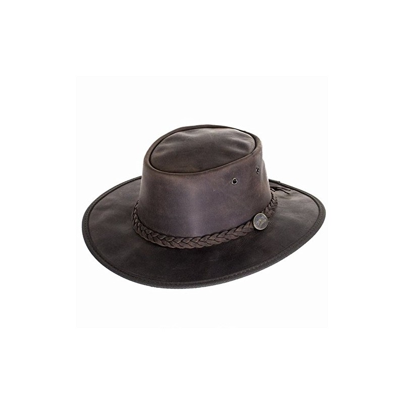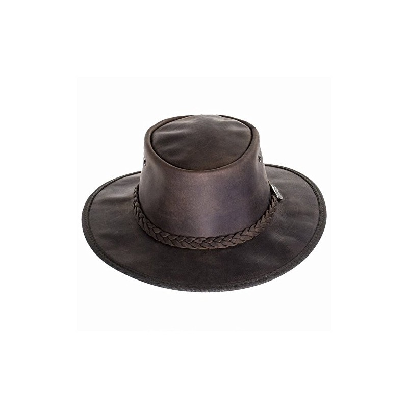 Barmah Foldaway Bronco Leather Outback Hat in Brown (M - 56cm)