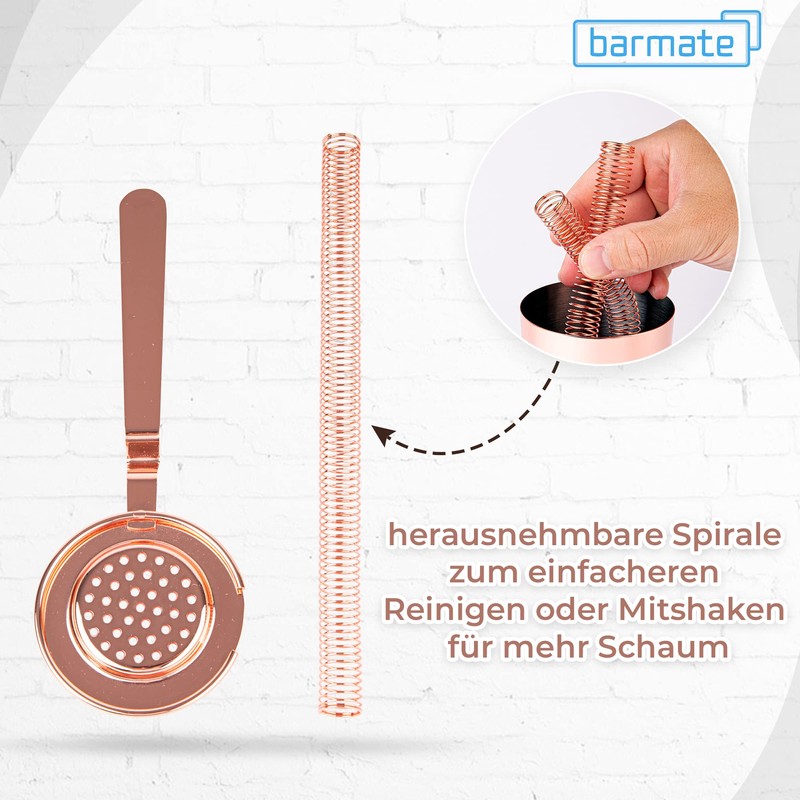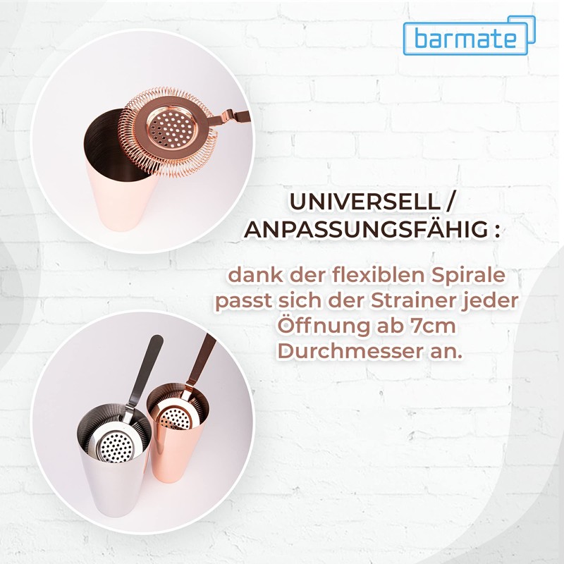- Universal size: thanks to the flexible spiral, the cocktail sieve adapts to any opening from 7 cm diameter. Everything from small shakers to mixing or mixing glass would be covered.