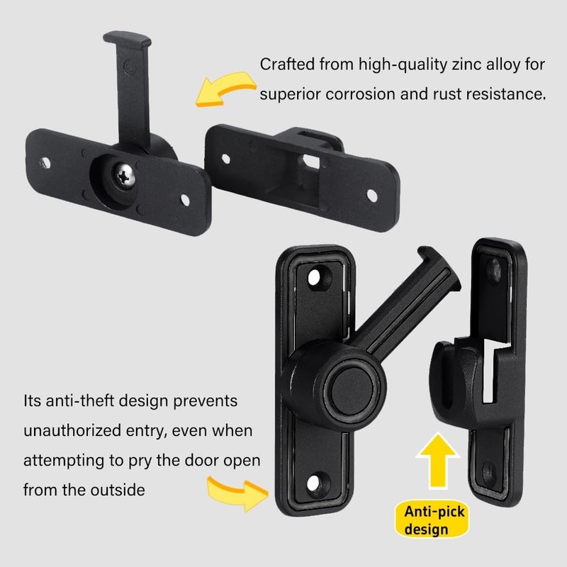 Barn Door Latch- 90/180° Sliding Lock for Bathroom/Bedroom/Garden/Gate/Garage, Secure Sliding Lock (Black)