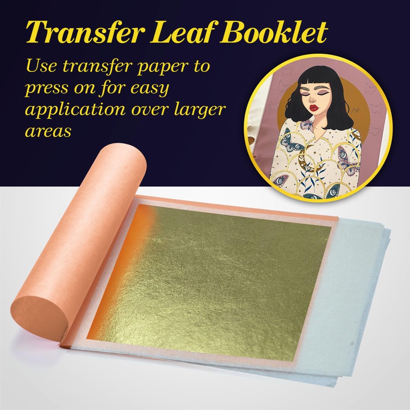 - Handcrafted Elegance: Each gold leaf sheet or hojas de oro para manualidades is tacked onto a transfer paper, handle able by hand. Our gold 22k transfer sheet is suitable for flat surfaces.