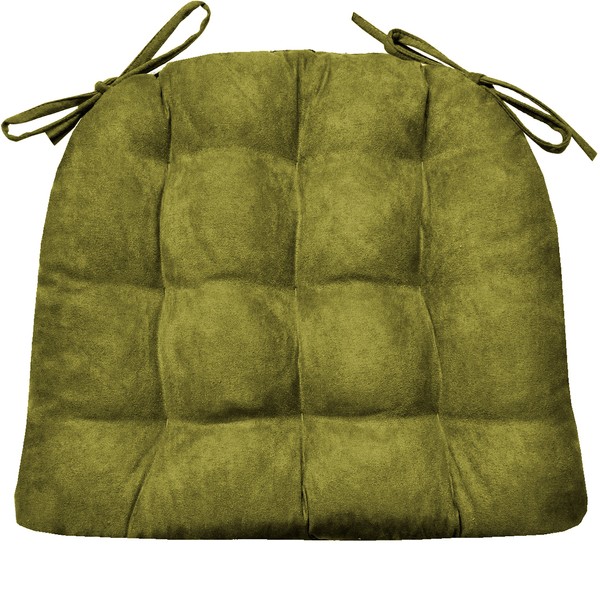 Barnett Home Decor Microsuede Laurel Green Dining Chair Pad with Ties - 19 x 19 Size Executive Chair Cushion - Reversible, Latex Foam Filled Cushion, Machine Washable (Sage - XL)