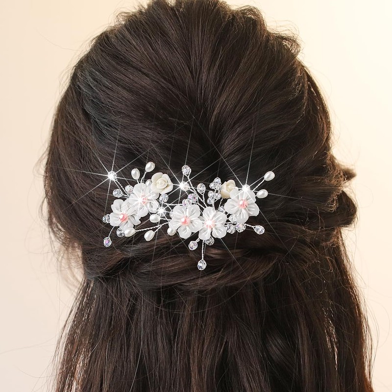 - Wedding hair pins are made of polymer clay and alloy,100% handmade and well crafted, Leaf and flower elements and embellished with pearls, look simple but stylish, full of delicacy and grace, which will make you the center of the crowd.