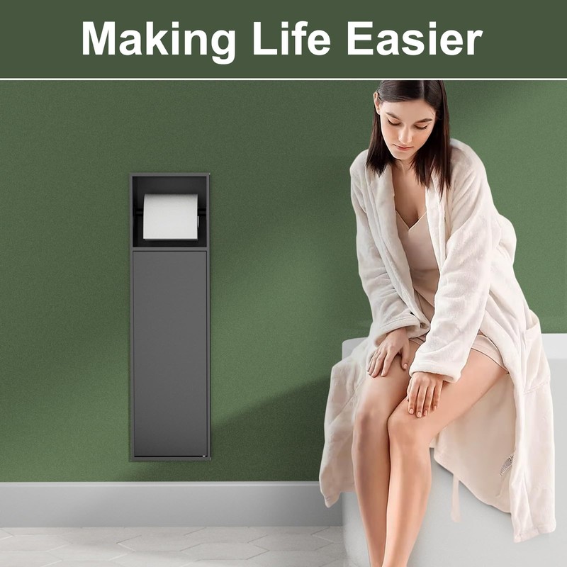 • Flush-Mount Design: Recessed tissue paper holder adopts over-mounted design, saves space toilet paper niche with built-in storage cabinet, perfect for small bathrooms or renovation projects