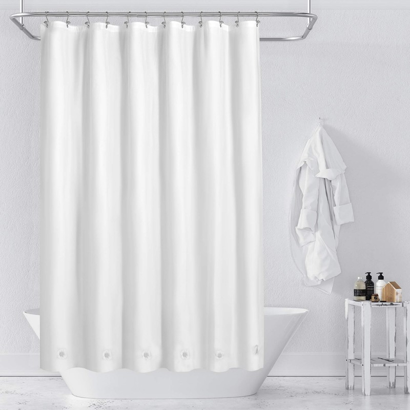 - Premium PEVA: 100% premium PEVA material with medium weight. This shower curtain liner is no chemical odor, PVC-free and BPA-free
