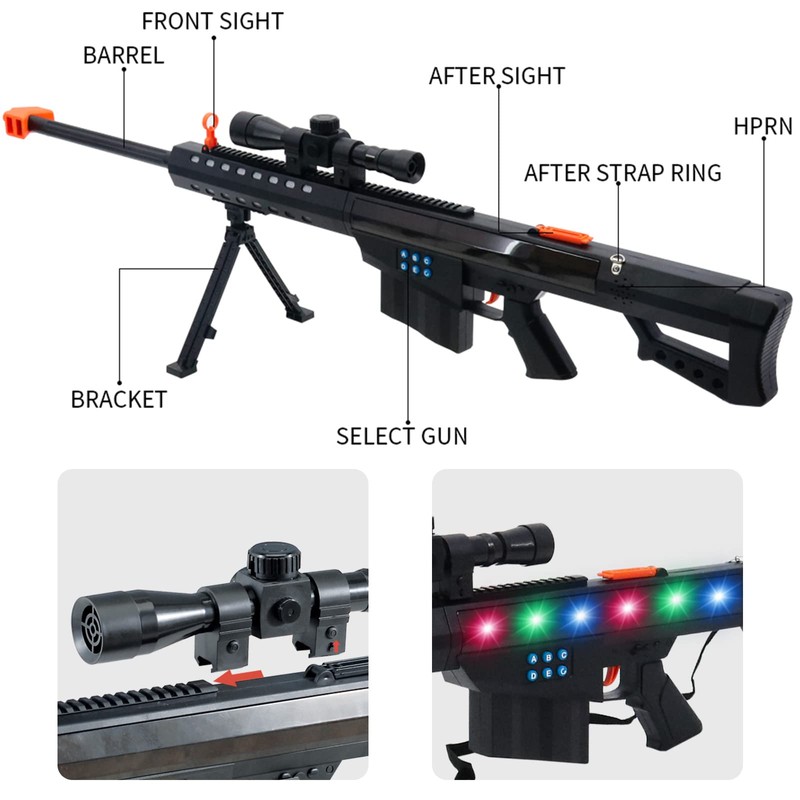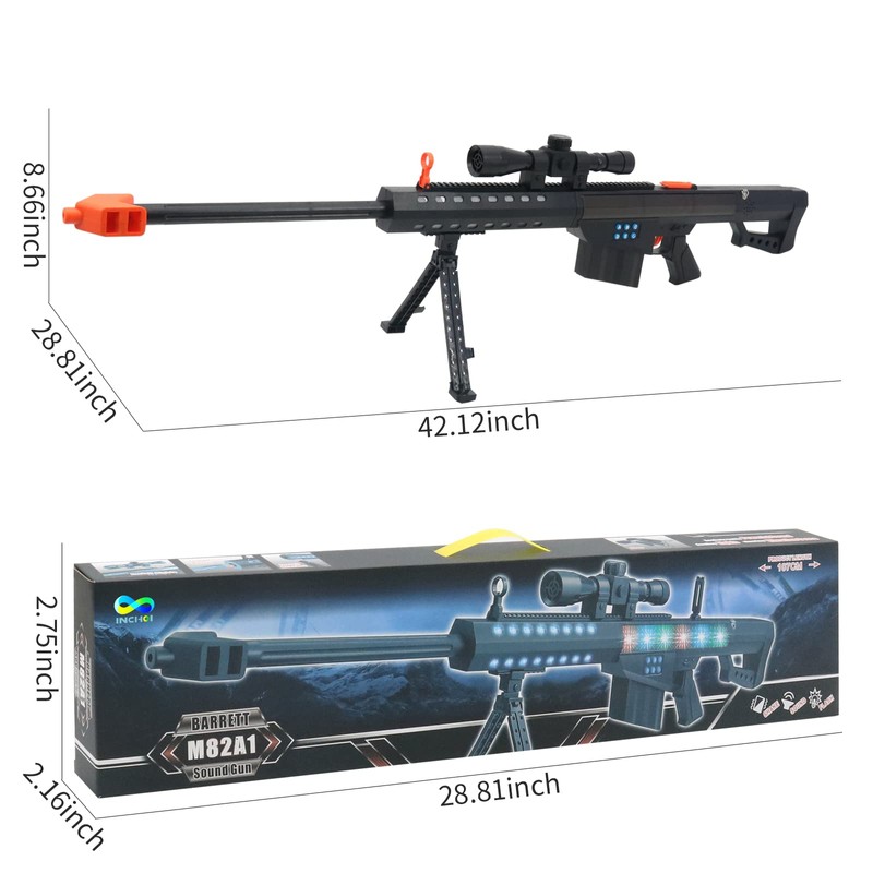 Barrett Sniper Rifle Machine Gun M82A1 Toy War Gun for Kids Boys 107cm High-Powered Flash Electric Gun with Flashing Lights, Firing Sound and Vibration