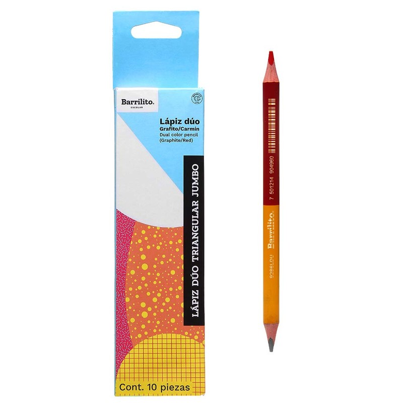 Barrilito Lápiz Bicolor Triangular Jumbo Grafíto-Carmín, 10 Piezas. 9286LDU