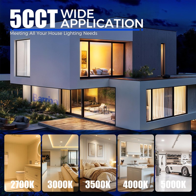 - Multiple Color Temperature Options: With 5 selectable color temperatures (2700K, 3000K, 3500K, 4000K, 5000K), you can choose according to your personal preference and environment. Barrina recessed lights 6 inch can seamlessly fit into your bedroom, living room, kitchen, bathroom, workplace and other place