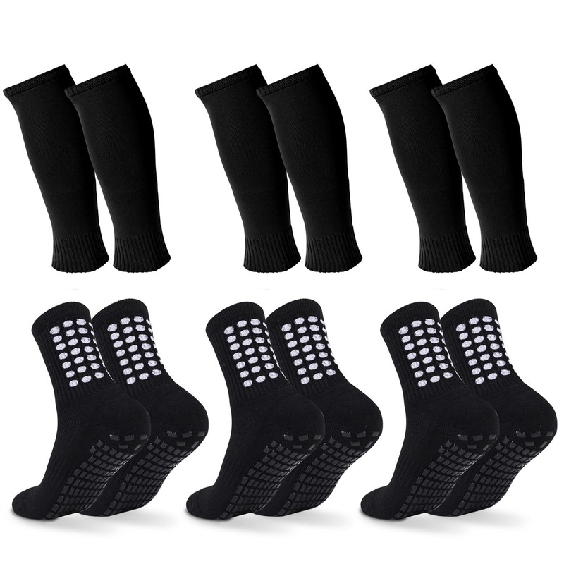 • Shin Protection Set: Including 3 pairs soccer socks with grips, and 3 pairs matched shin guard sleeves,to provide you with all-around protection during sports, further improve your athletic performance