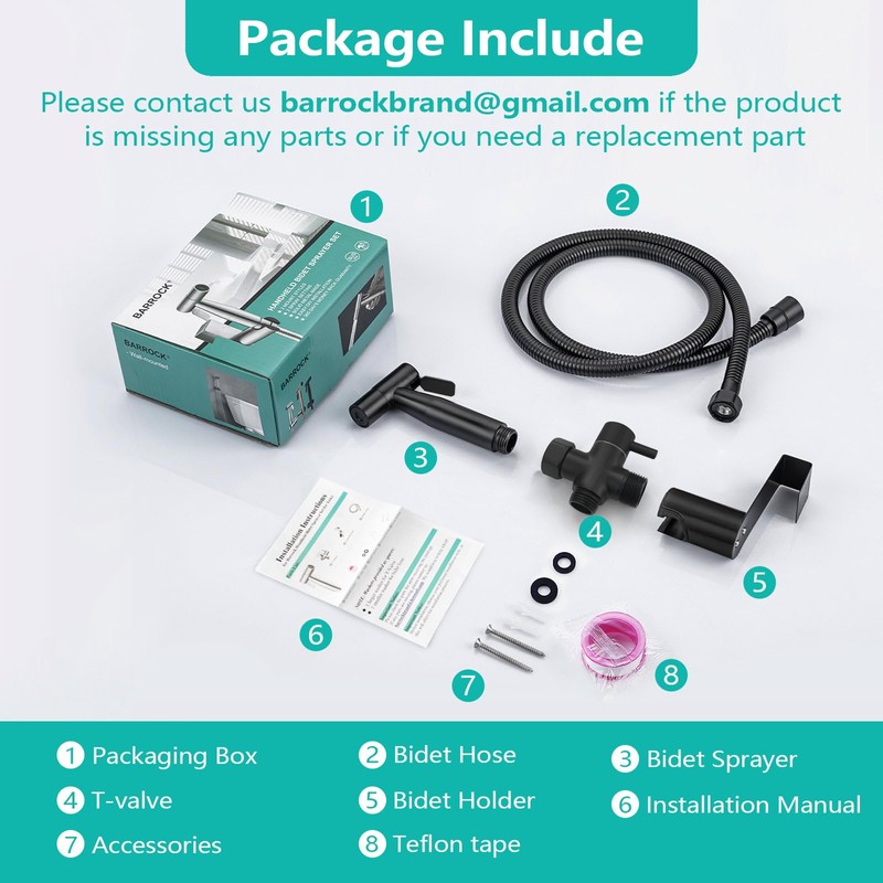 - High-Quality Bidet Sprayer: Expertly designed with a solid brass T-valve,a SUS304 stainless steel sprayer, an explosion-proof bidet hose and other necessary installation accessories. Upgrade your hygiene routine with BARROCK handheld bidet sprayer