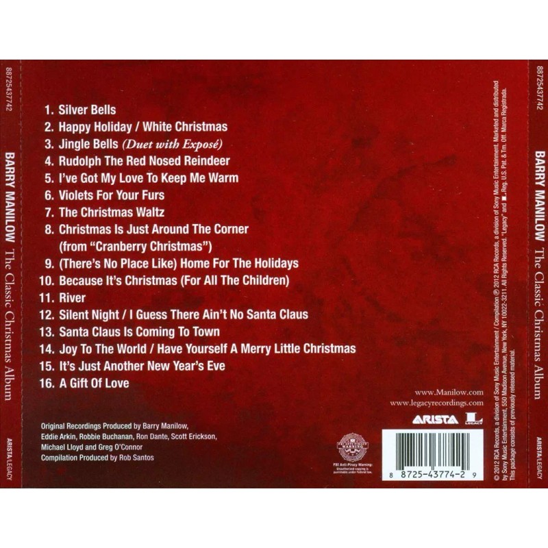 Legacy's 2012 release The Classic Christmas Album rounds up 16 selections from the various holiday albums Barry Manilow recorded for Arista over the years. There were three sets -- 1990's Because It's Christmas, 2002's A Christmas Gift of Love, 2007's In the Swing of Christmas -- and this samples all three fairly evenly. There may be some shifts in mood but it's subtle, and the entirety of this collection delivers the kind of smooth, swinging cheer fans expect from Manilow. ~ Stephen Thomas Erlewine