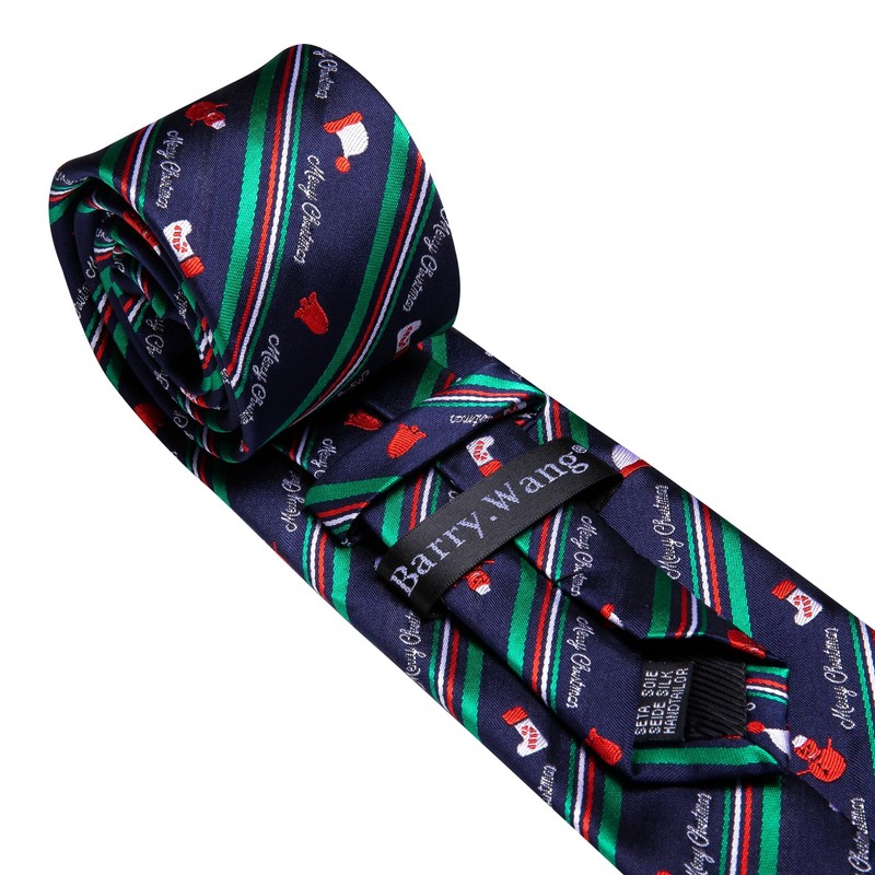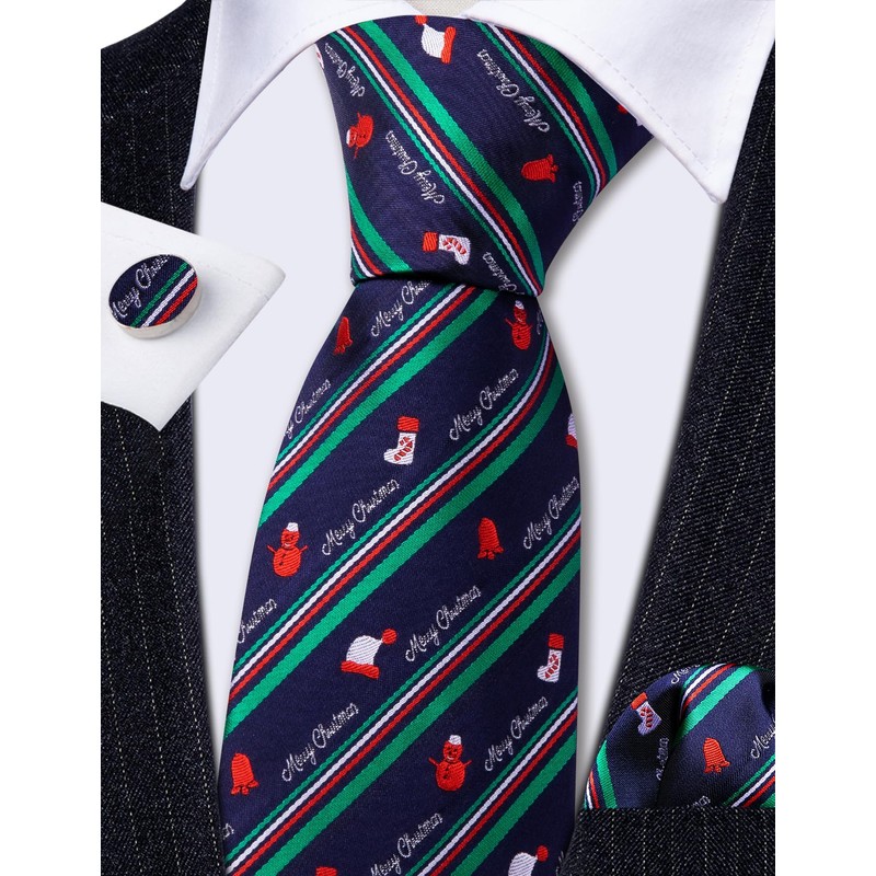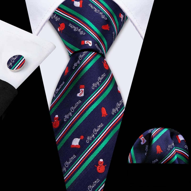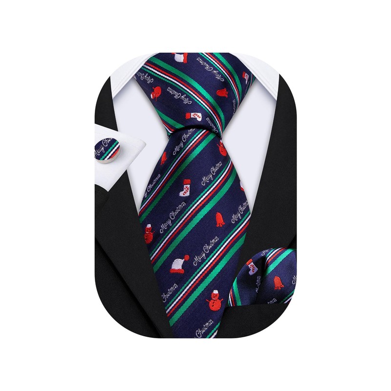 Barry.Wang - Juego de corbatas de Navidad para hombre con corbata, pañuelo de seda, para fiesta, Feliz Navidad Azul, Talla única