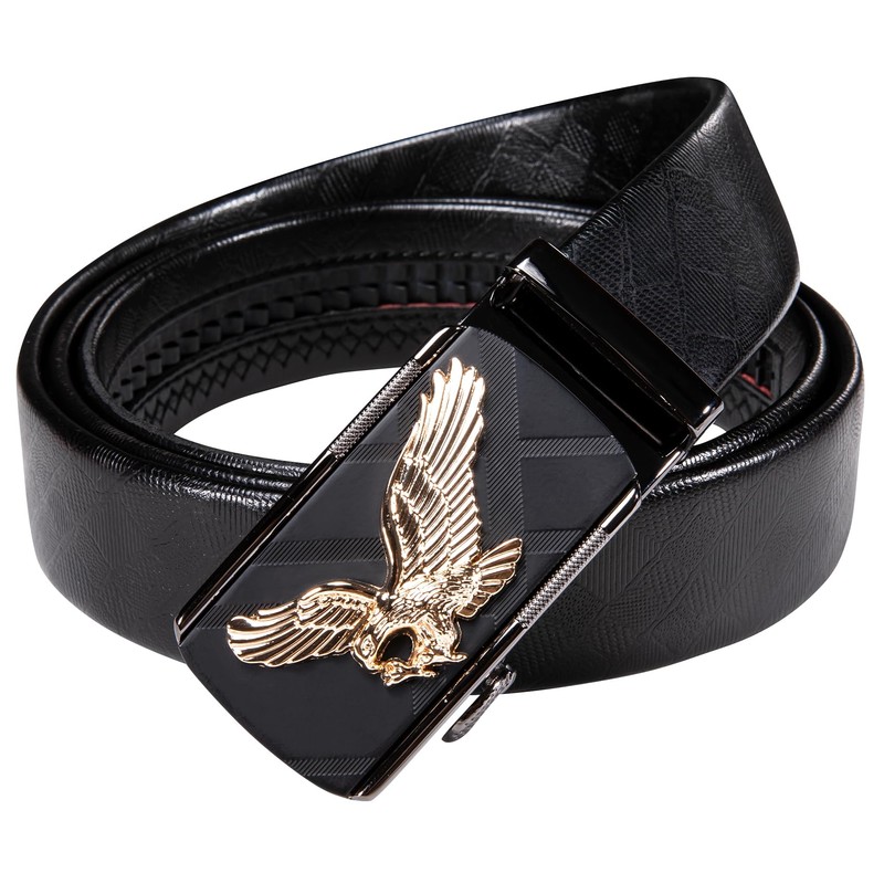 Barry.Wang Men's Leather Belt Black Ratchet Belt with 3 Automatic Buckles Adjustable Strap Business Gift Box, Black and Gold Eagle Pattern