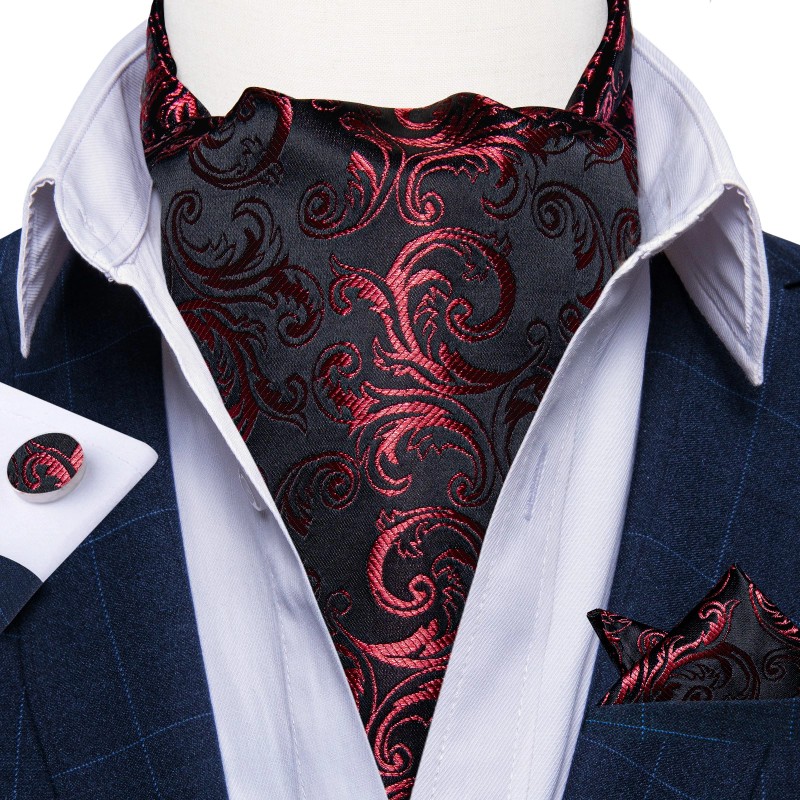 Barry Wang Mens Ascot Red Paisley Cravet Tie Handkerchief Cufflinks Set Wedding Formal