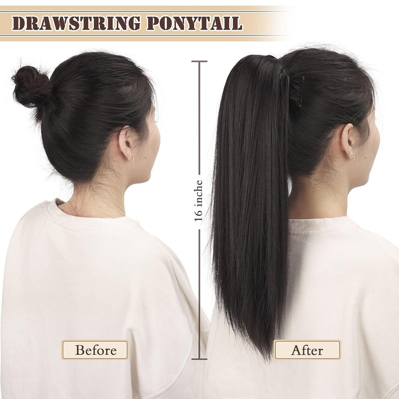 • 【Multi-Layered Hair Tail Design 】The drawstring straight ponytail extension features a multi-layered hair tail design, which enhances its natural appearance and reduces the likelihood of tangling. It provides a realistic and authentic look when worn. The extension is 16 inches/41 cm in length and weighs 125g/0.28lb.