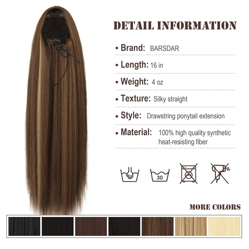 • 【Premium Quality Material】The BARSDAR Ponytail Extension is made from heat-resistant synthetic fiber. This material is not only soft, silky, and smooth, but it can also blend seamlessly with your natural hair. It provides a salon-quality experience without tangling easily.